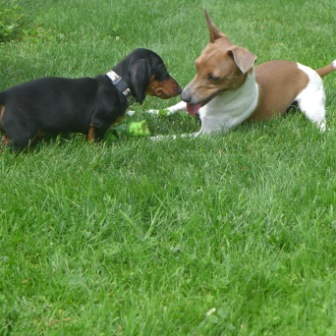 Dann kann ich spielen und die Herrchen können sich über Erziehung