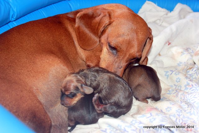ab..... Bis zum 07.05.14 - dann war es soweit! Die Welpen kündigten sich