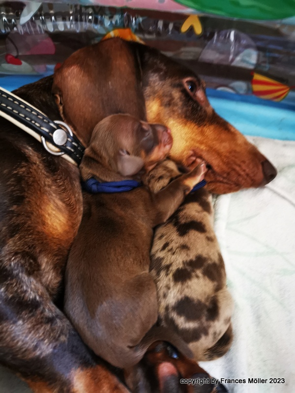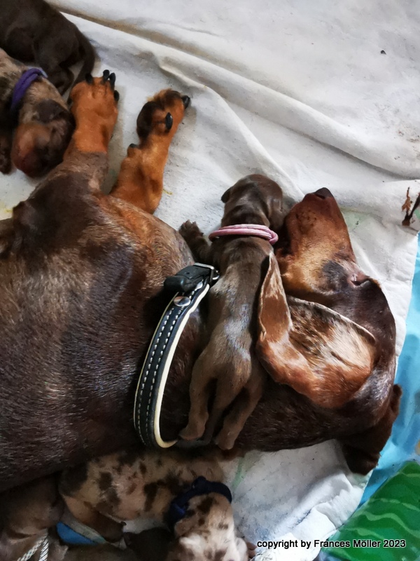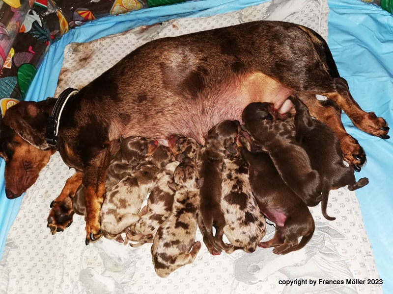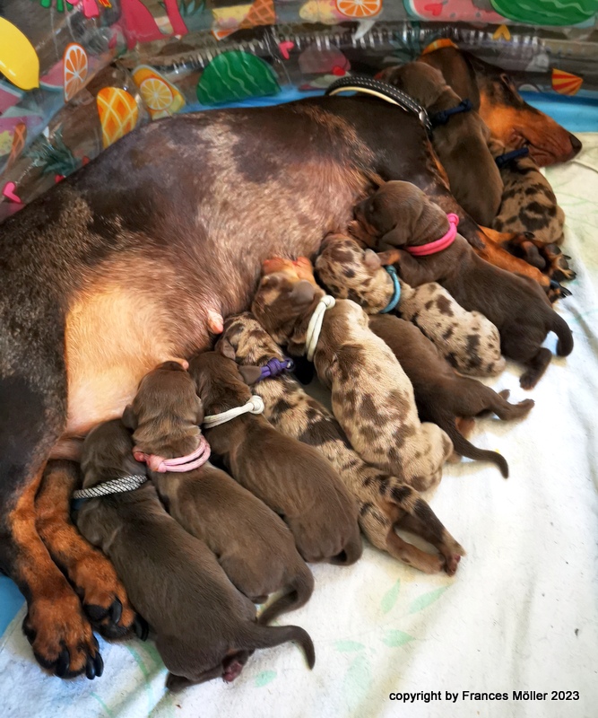 10 Welpen sind natürlich eine sehr große Anzahl für eine Dackelmama. Und